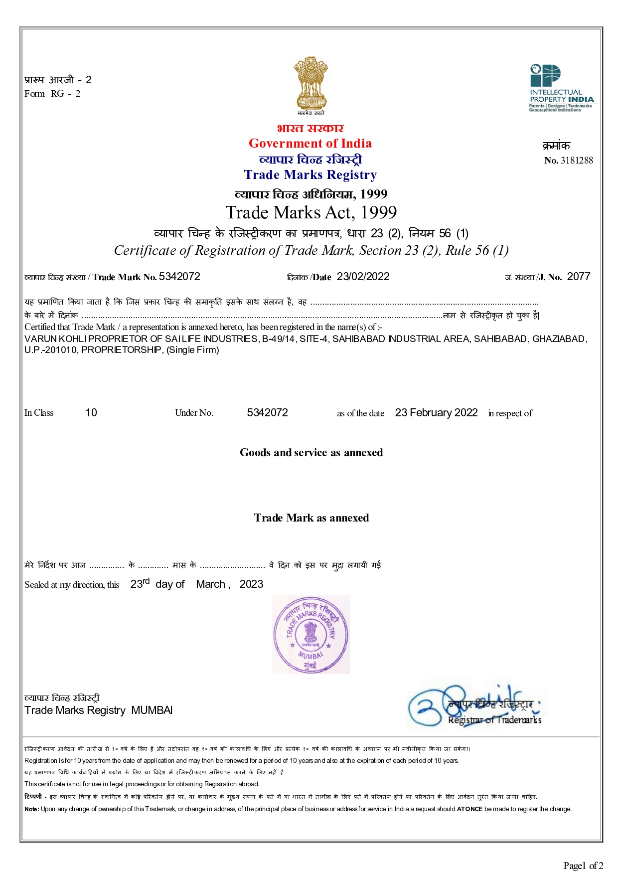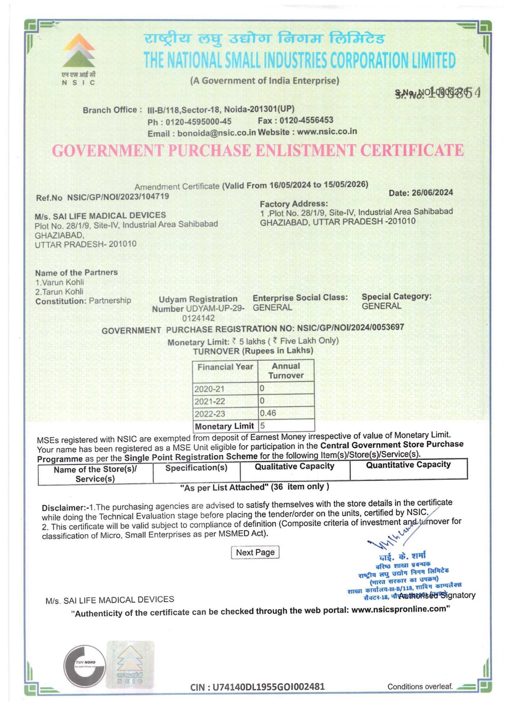 Our Certificate